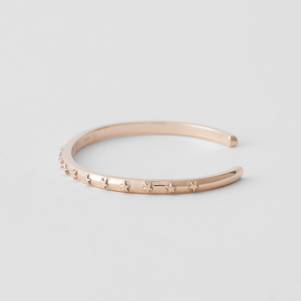 こちらも重ね付けはもちろん数本づつや他のバングルに足してもほどよいアクセントにもなります。柄はスター、スクエア、ドット、トライアングルの4種類。