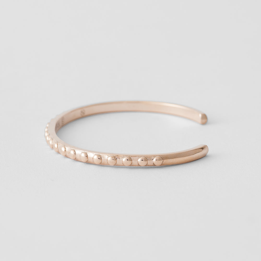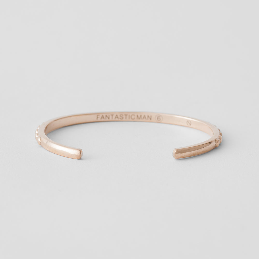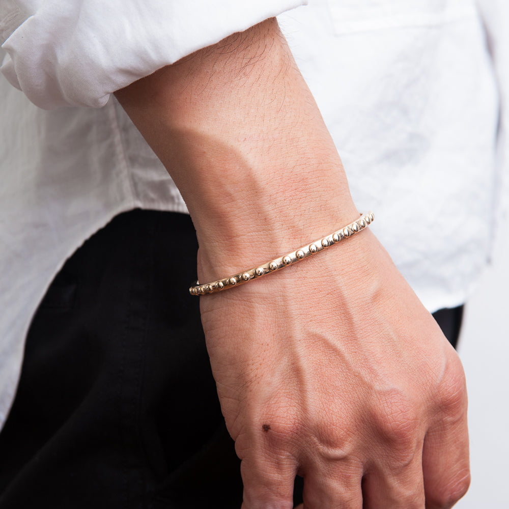 コレクションNo.6。620のゴールドバージョン。 こちらも重ね付けはもちろん数本づつや他のバングルに足してもほどよいアクセントにもなります。柄はスター、スクエア、ドット、トライアングルの4種類。 Men's sizeとWomen's sizeの展開がございます。