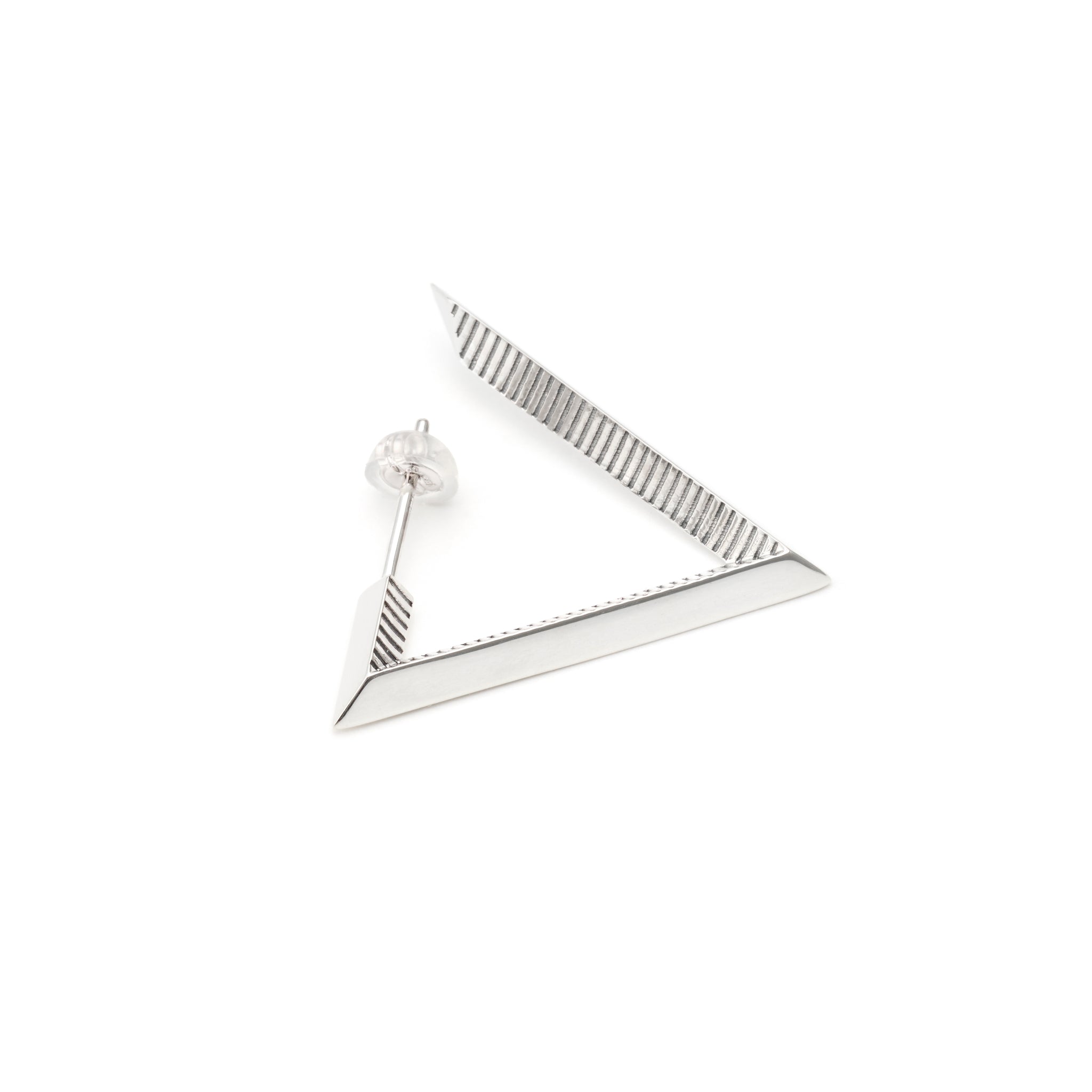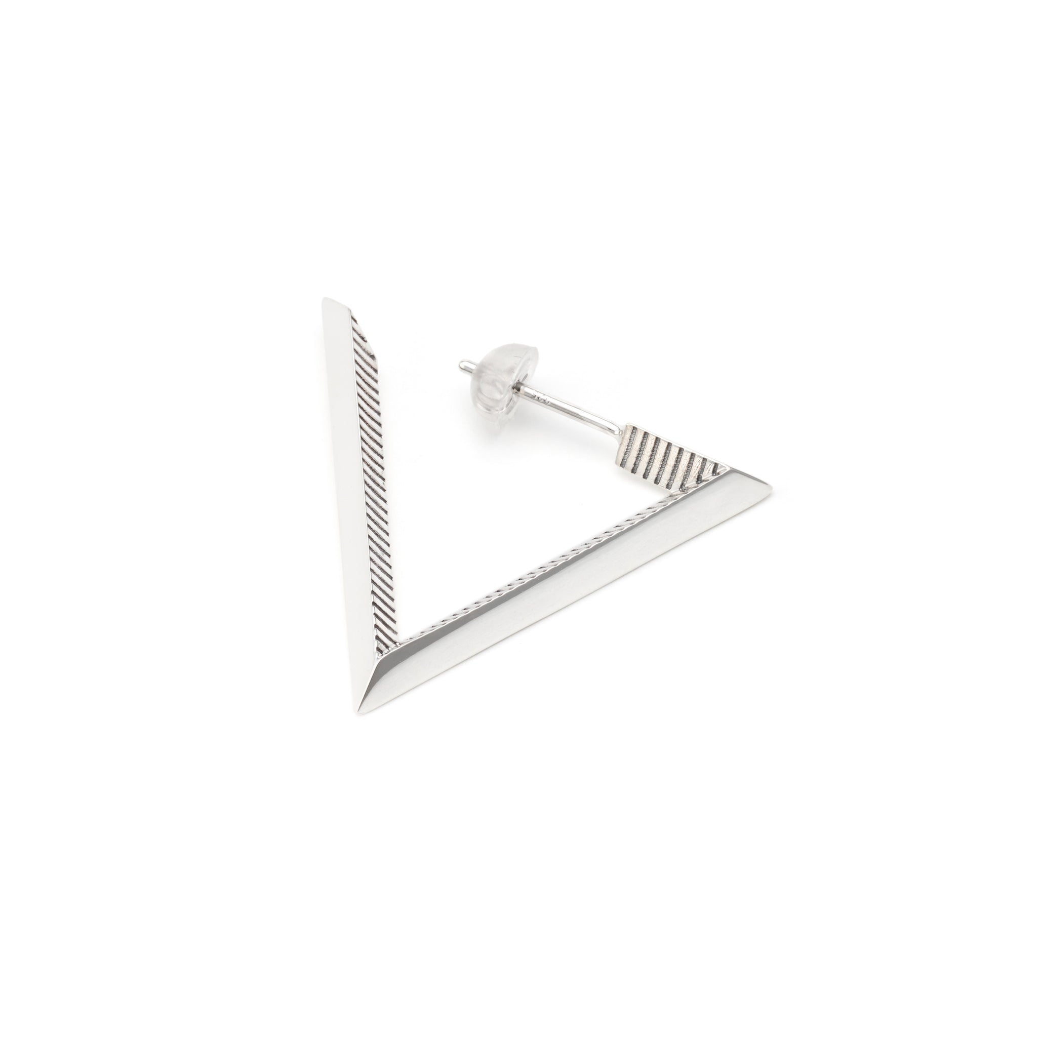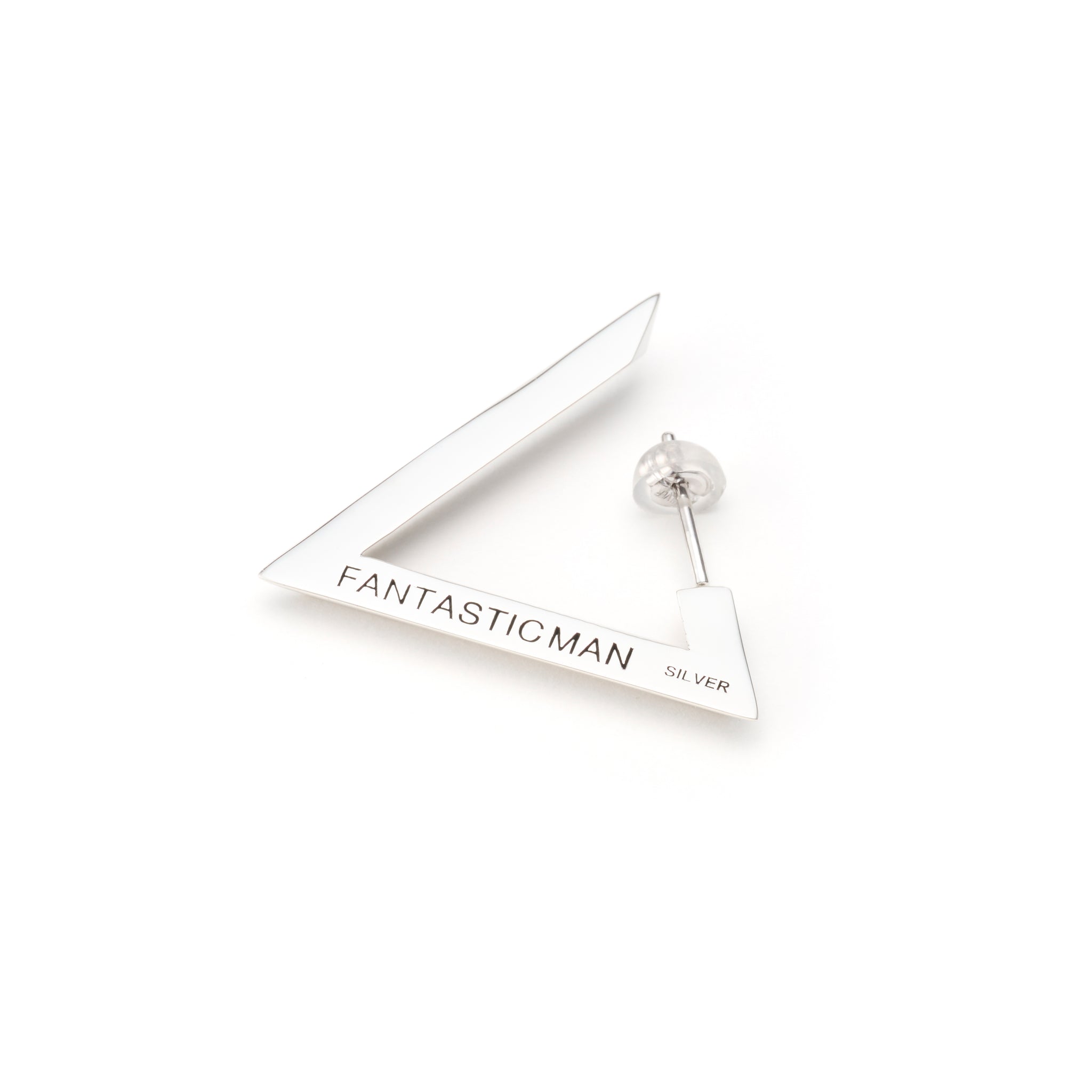 コレクションNo.9。No.1コレクションでリリースしてからFANTASTIC MANの代表的モチーフであるトライアングルをベースとしたピアスは、他コレクションでも多く採用する彫り柄にいぶしの仕上げにより立体の陰影と相まって強い主張のアイテムに仕上がっている。 コレクション内バングル、ブレスレット、ネックレスとモチーフを合わせた装用を可能とする。