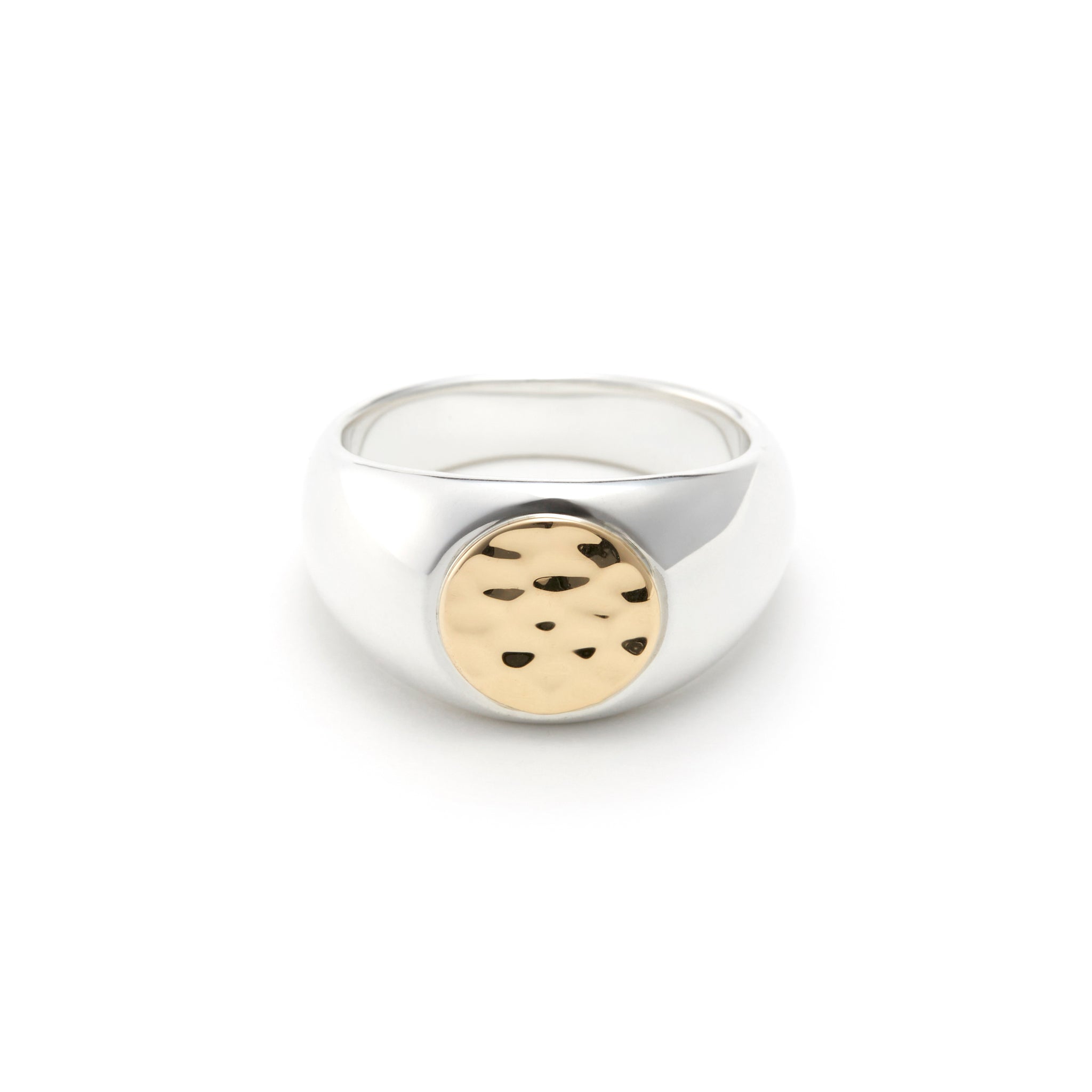 スターリングシルバーライン/ Refinementシリーズ/ ONE GOLD / シグネット丸みを帯びたプレーンで優美な曲面造形に伝統的なクラフト技巧によるK18ゴールド素材の印象的なモチーフアクセントを組み合わせ上品に存在を醸す仕立てとしたリング。ロジウムメッキに頼ることなくシルバー素材とゴールド素材の良さを極限まで活かした鏡面仕上げは日本の職人技が光るファインジュエリークオリティです。 品番の異なるシルバーモデルもご用意しています。同モチーフのネックレストップとのコーディネートで指先と首元のアクセントをお楽しみいただけます。